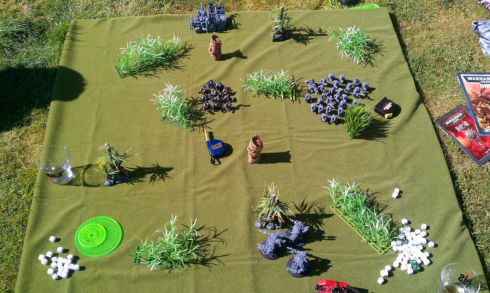 Setup a board with grass mat and terrian outside in the awesome hot weather: